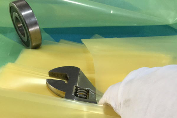 VCI氣相防銹膜(防銹袋)是將高分子聚乙烯樹脂(LDPE)與功能VCI樹脂配比混合,采用現(xiàn)代薄膜共擠技術(shù)生產(chǎn)的新一代復(fù)合防銹薄膜。具有良好的氣化防銹性能、阻隔防潮、使用方便、透明直觀等特點;當(dāng)用塑料袋包裹金屬產(chǎn)品時,氣相緩蝕劑在封閉空間內(nèi)氣化并凝聚在所有金屬表面上形成氣相保護層,從而防止金屬產(chǎn)品銹蝕。符合GB-T19532-2004防銹性能要求。